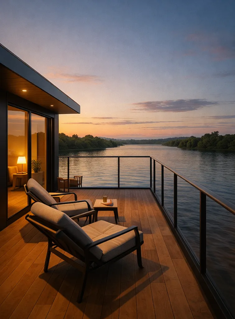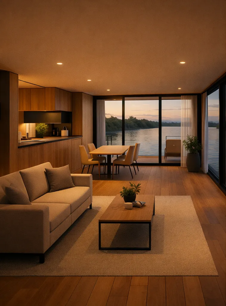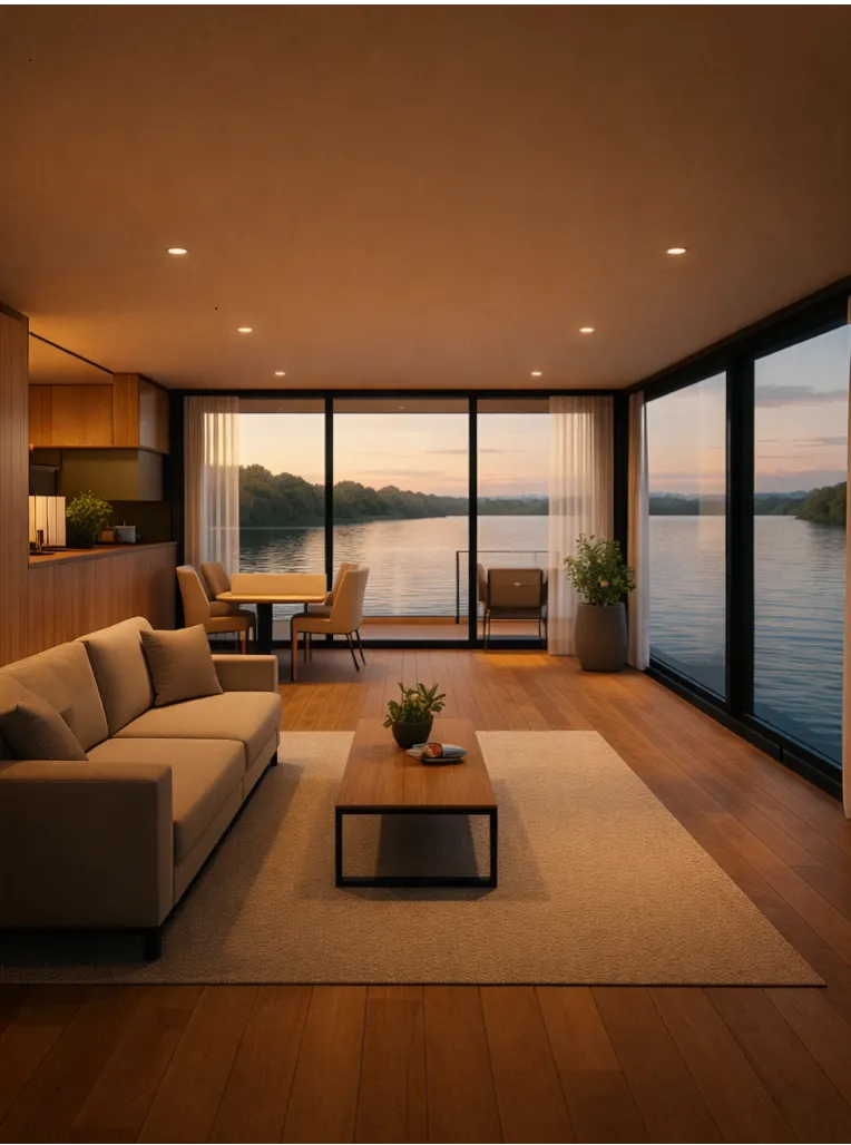 A guided walkthrough of our floating residence design, showcasing living spaces, outdoor areas, and integrated sustainability systems.